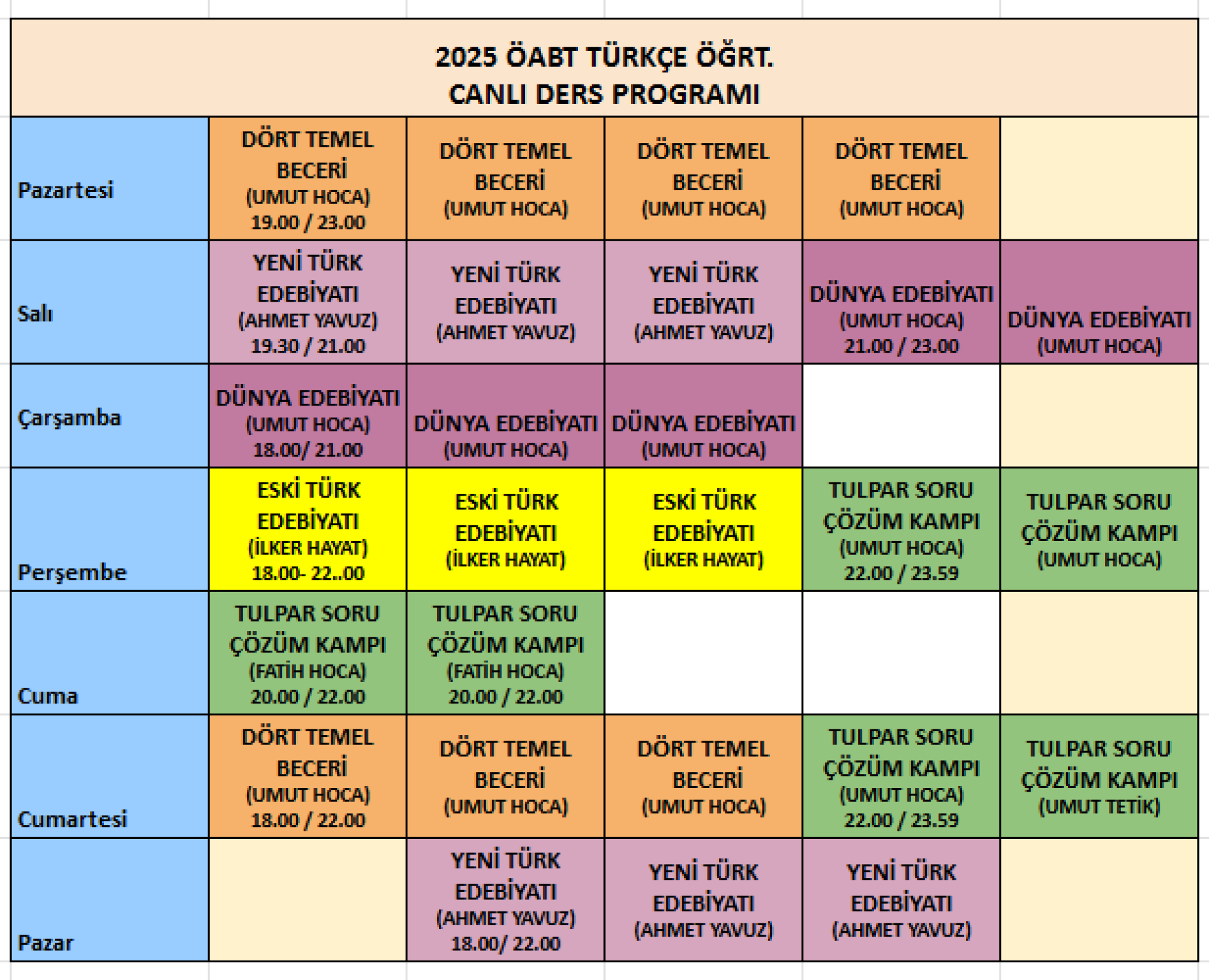 2025 ÖABT TÜRKÇE ÖĞRETMENLİĞİ CANLI DERS PROGRAMI
