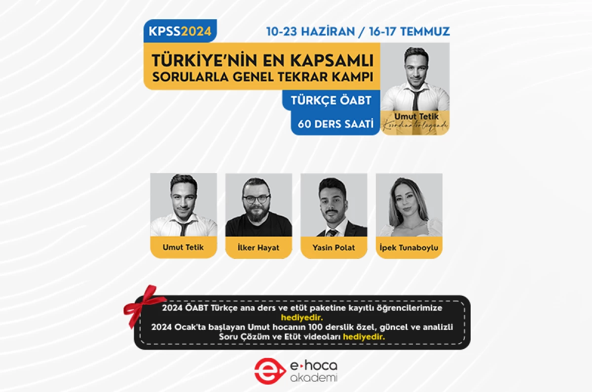 ÖNEMLİ NOT: KURUMUMUZDA ANA TÜRKÇE ÖABT VE TÜEKÇE ÖABT ETÜT PAKETİNE KAYITLI KURSİYERLERİMİZE BU KAMP ÜCRETSİZDİR.